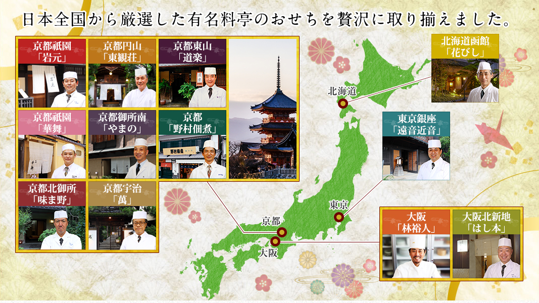 ここが取り扱うおせちは老舗の料亭や名店が監修した超本格的なおせちです。